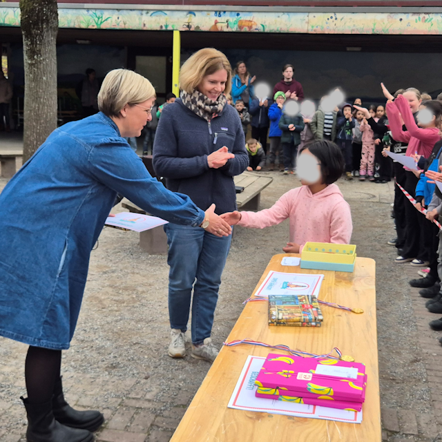 Als besondere Anerkennung erhielten die drei Erstplatzierten Bücher, die uns großzügigerweise die Buchhandlung Dietsch (Benrath) gespendet hat. Dafür möchten wir uns herzlich bedanken! Wir gratulieren allen Teilnehmerinnen und Teilnehmern zu ihrem Mut, ihrem Können und ihrer Lesefreude – und freuen uns schon jetzt auf den Vorlesewettbewerb im nächsten Jahr!
