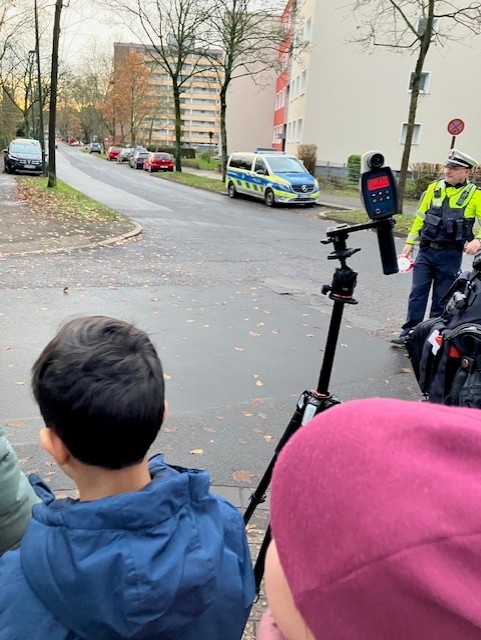 Gemeinsam mit der Polizei haben am Dienstagmorgen Kinder unserer Schule eine Aktion durchgeführt. Mit dieser sollten Autofahrer auf das Beachten von Tempo 30 erinnert werden.