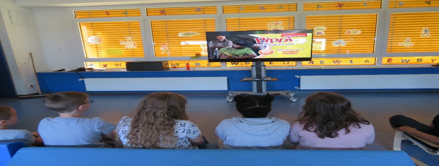 Als Abschluss der ersten Ferienwoche haben die Kinder ihre gebastelten Werke vorgestellt und anschließend wurde der Film „Pippi und die Seeräuber“ gezeigt. Wie im Kino durfte Popcorn aus einer Popcornmaschine nicht fehlen, das den Kindern in echten Kinotüten serviert wurde.