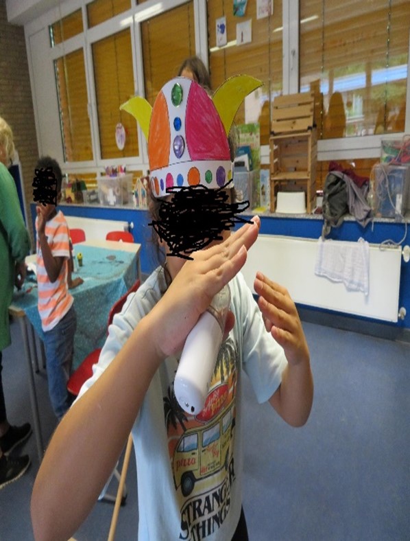 In der ersten Woche trotzten die Kinder dem häufig schlechten Wetter und sind täglich mit Begeisterung in Begleitung von Fr. Bremm und einer Mitarbeiterin von uns zum Abenteuerspielplatz Garath (ASP) gegangen.Auf dem Hin- und Rückweg konnten sich die Kinder im Wald richtig austoben: sie hüpften, liefen, kletterten und balancierten auf den Wegen und über die liegenden Bäume.Auf dem ASP besuchten die Kinder im Tierbereich die Schafe, Ziegen und Kaninchen, bauten mit Hammer und Nägel im Baubereich, schaukelten und tobten oder spielten im Innenbereich. Das Highlight für die Kinder war das Feuer machen, an dem es leckeres Stockbrot gab.In der zweiten Woche wurde zum Einstieg Wissenswertes über die Wikinger gesammelt. Außerdem bastelten wir tolle Wikingerhelme und die „kleinen“ Wikinger gingen im Wald auf Schatzsuche.Auch ein selbstgekochtes Mittagessen (Hähnchen, Fladenbrot mit Quark und Salat) durfte bei unseren Wikingern nicht fehlen.Einer der Höhepunkte war ein etwas regnerischer Ausflug zum Freizeitpark „Irrland“ in Kevelaer, bei dem die Kinder wie immer sehr viel Spaß hatten.Und zum Abschluss unseres Ferienprogrammes schauten wir mit den Kindern den Film „Wickie und die starken Männer“ inclusive Popcorn und als Bonbon gab es Pizza zum Essen.