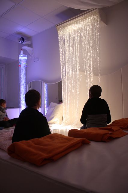 - Farbiges Licht, Lichteffekte und Wandprojektionen wirken beruhigend