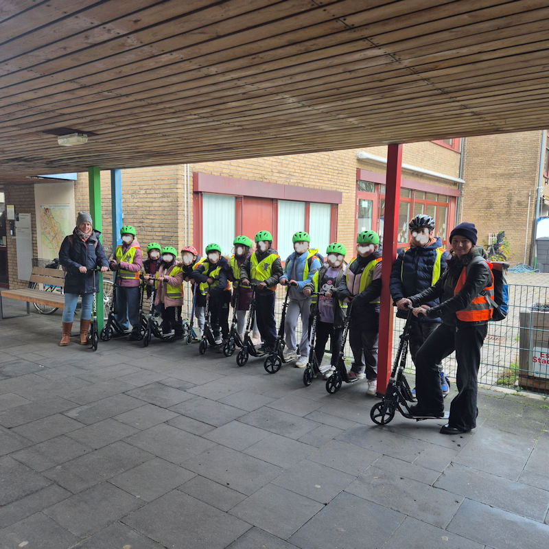 Bei strahlendem Sonnenschein war es endlich soweit: Die Kinder unserer Schule konnten ihre erste Fahrt zum Abenteuerspielplatz antreten – und das auf brandneuen Rollern!
